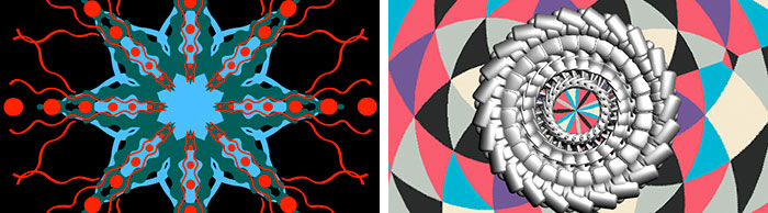2. 영상은 openGL의 가상공간에서 만다라형의 기본형태를 유지하되 각각의 사운드 트랙에 반응하는 비주얼라이저로 개발한다.